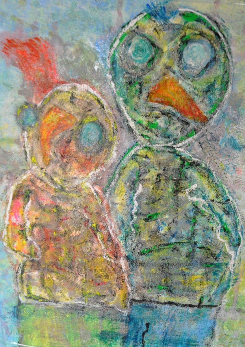 Smilende glad maleri, som er malet på en kraftig dansk kvalitets blindramme, 4 cm dyb og kanten er malet med rundt. Akryl/blandform på lærred. Maleriet er påført klar lak.