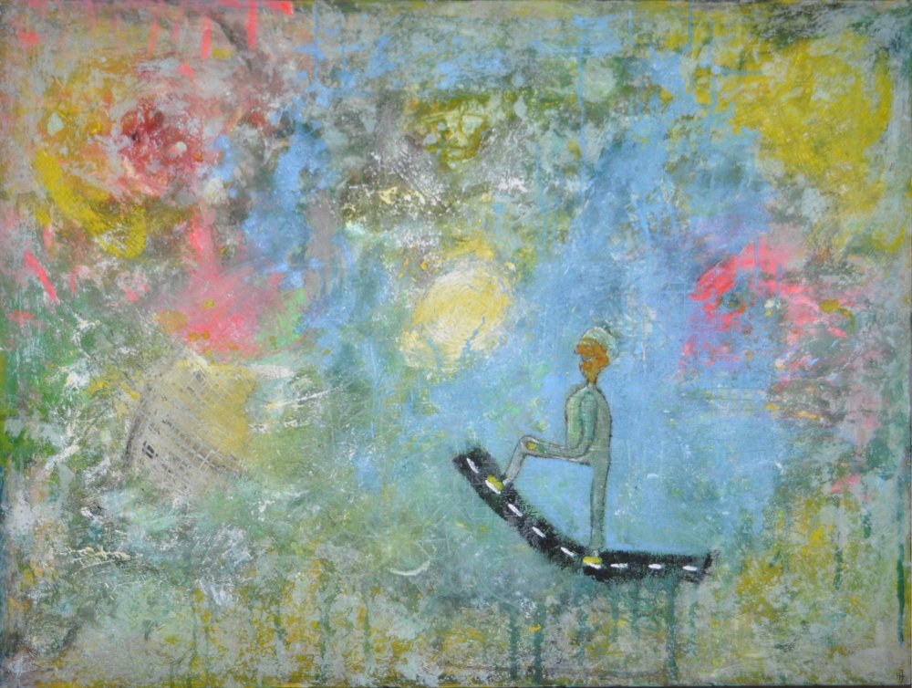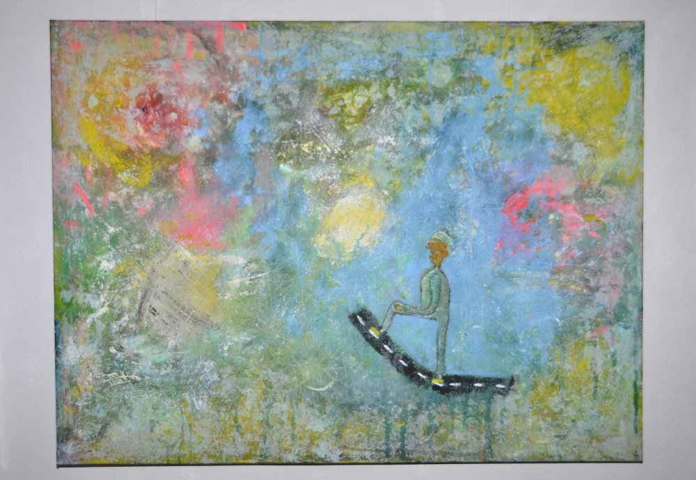 Smilende glad maleri, som er malet på en kraftig dansk kvalitets blindramme, 4 cm dyb og kanten er malet med rundt. Akryl/blandform på lærred. Maleriet er påført klar lak.