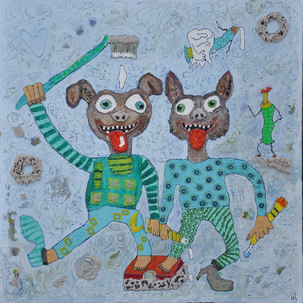 Smilende glad maleri.
