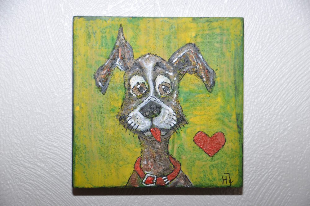 Galleri-HJ maleri på en træklods str. 14x14, som både kan hænge og stå.