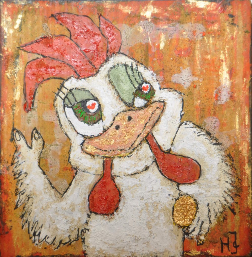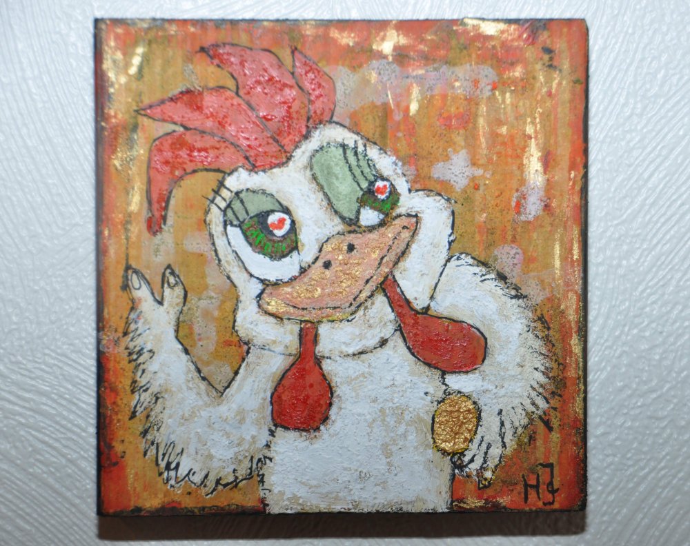 Galleri-HJ maleri på en træklods str. 14x14, som både kan hænge og stå.