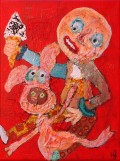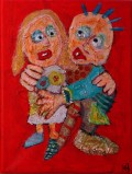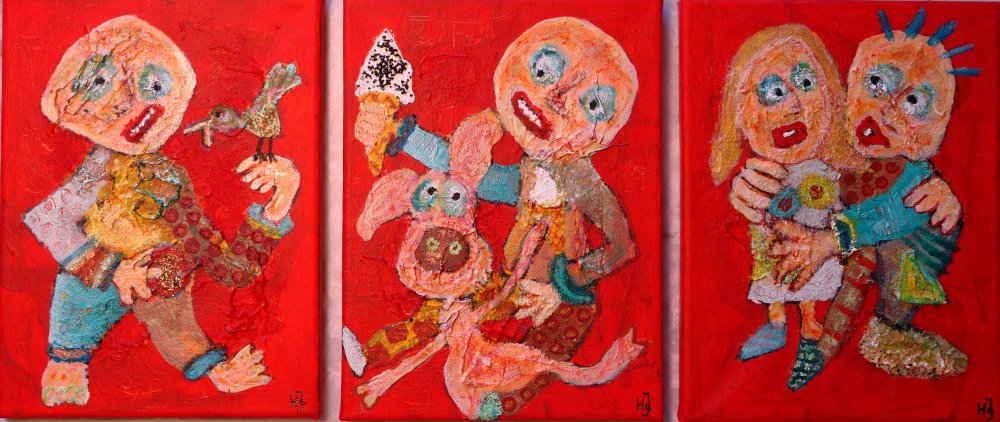 3 originale Galleri-HJ malerier str. 24x18. Lavet med meget forskelligt. Akryl på lærred.