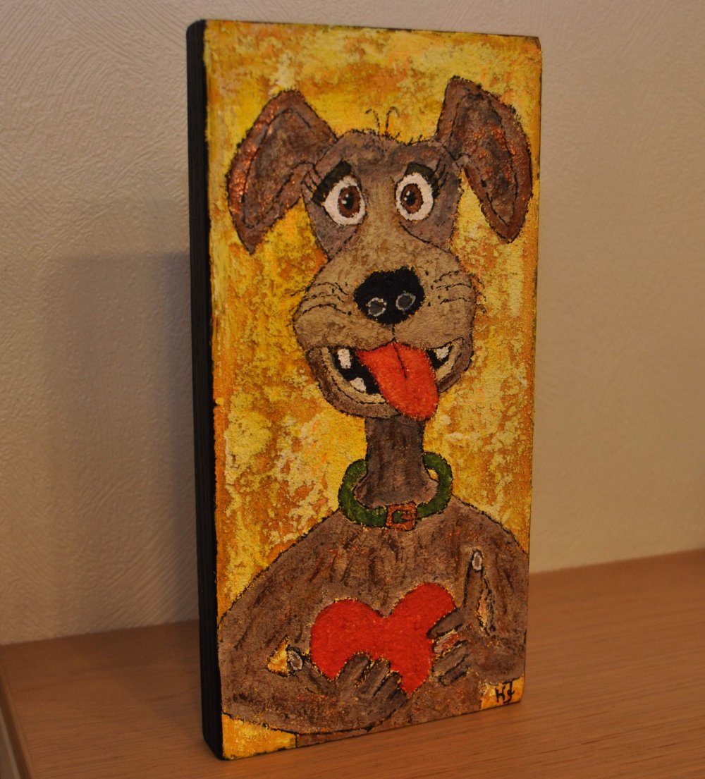 Galleri-HJ maleri på en træklods str. 28x14, som både kan hænge og stå.